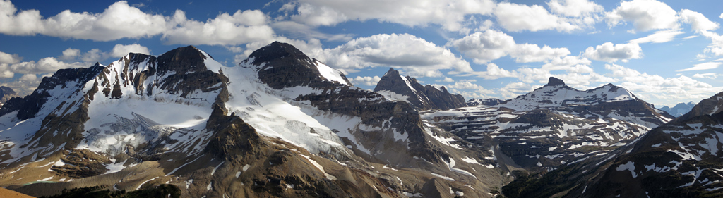 There are many amazing views in the Canadian Rockies that are simply too vast to capture within a single photograph. Thanks to the continuing advacements in image post-processing software it's becoming increasingly possible, if not easy, to combine a series of panning photographs into a single, seamless panoramic image. While these composite shots don’t always work, the results can be spectacular when they do.